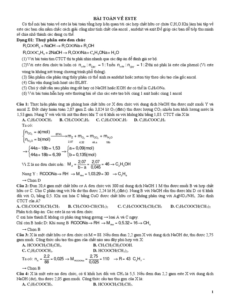 Cho 4 2 Gam Este đơn Chức No Mạch Hở E Tac Dụng Với Dd Naoh Thu được 4 76 Gam Muối E Co Thể La Hoa Học Lớp 12 Bai Tập